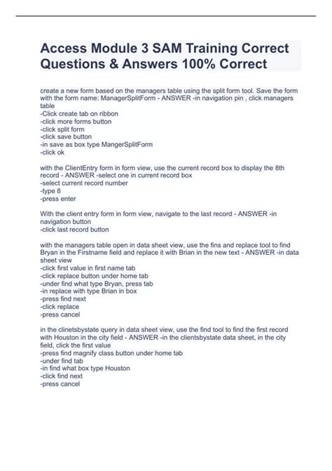 Read Sam Course 2010 Access Answers Kindle Editon By Click Button. Sam Course 2010 Access Answers it’s easy to recommend a new book category such as Novel, journal, comic, magazin, ect. You see it and you just know that the designer is also an author and understands the challenges involved with having a good book. You can easy klick for detailing book and you can read it online, even you can download it